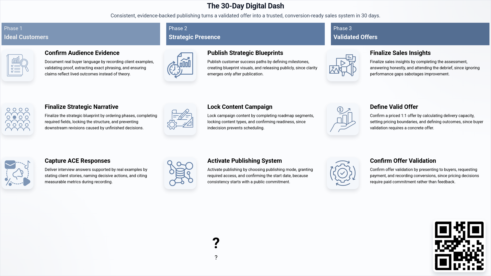 Turn your validated offer into a consistent, buyer-trusted sales system—built, published, and supported for you.
