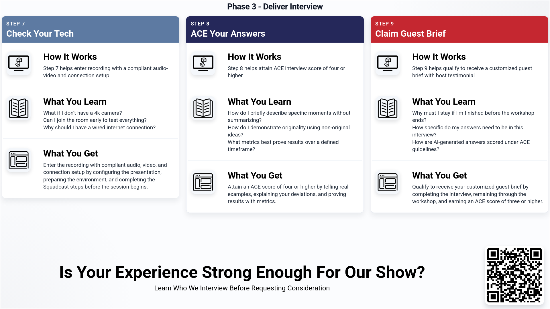This live session shows you how to refine audience research, frame a strategic narrative, and deliver ACE-level interview answers that lead to real conversations — not just polite applause.